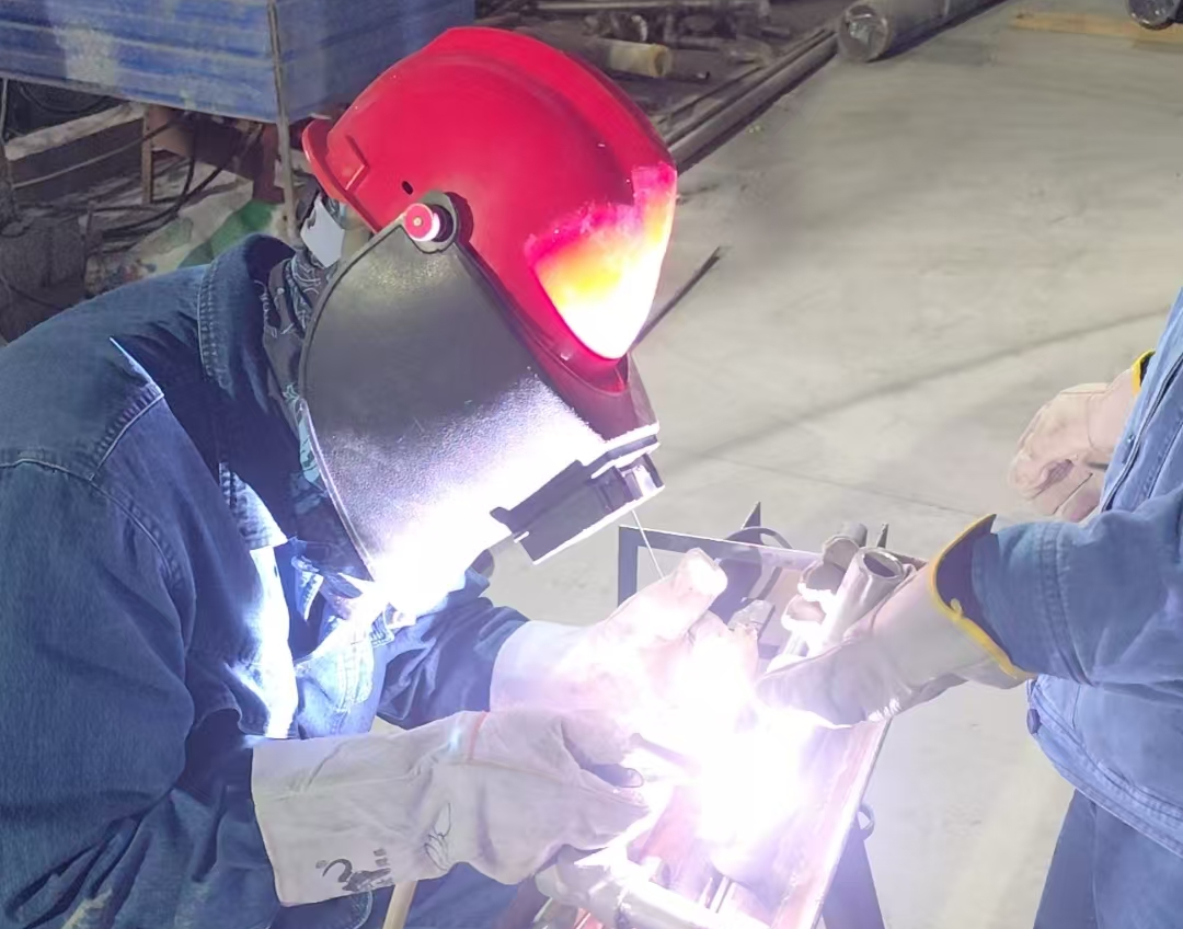 图为第一分公司大庆石化90万吨/年页岩油轻烃净化装置项目作业人员正在进行焊接作业