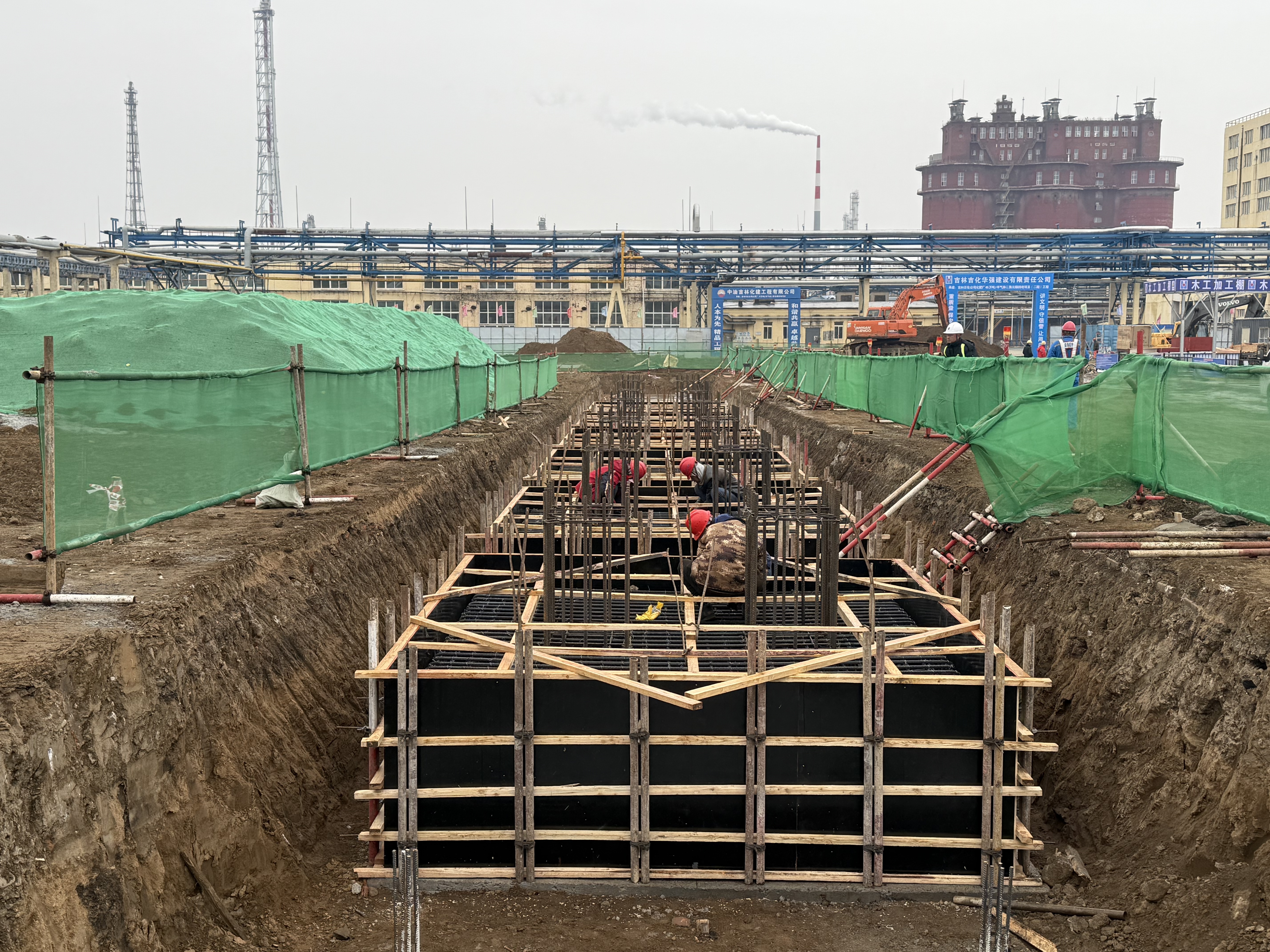 当前,项目建设正严格按计划高效推进:成品压缩机厂房桩基工程已全面竣工,为后续主体结构施工奠定了坚实基础;钢筋加工区、木工加工区和材料堆放区均严格执行标准化管理,各类物料分类清晰、堆放整齐,作业流程规范高效;办公区地面硬化工作已顺利完成,显著改善了项目管理人员的办公环境,营造出整洁有序的工作氛围。全体施工人员正全力以赴推进基础承台绑筋、支模及混凝土浇筑等关键工序,现场施工组织严密、推进有力,展现出扎实苦干、奋勇争先的蓬勃局面。