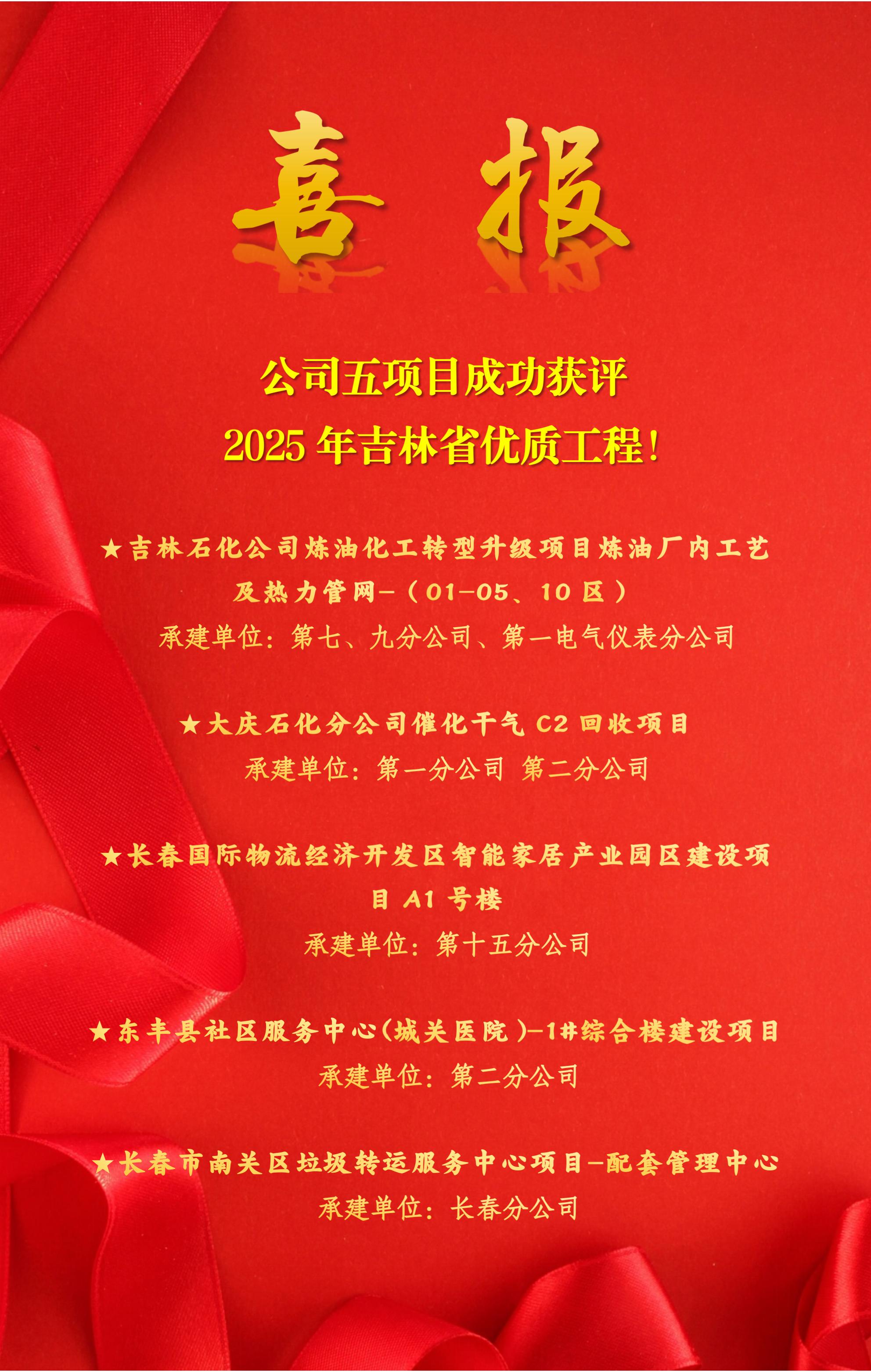 喜报|公司五项目成功获评2025年吉林省优质工程