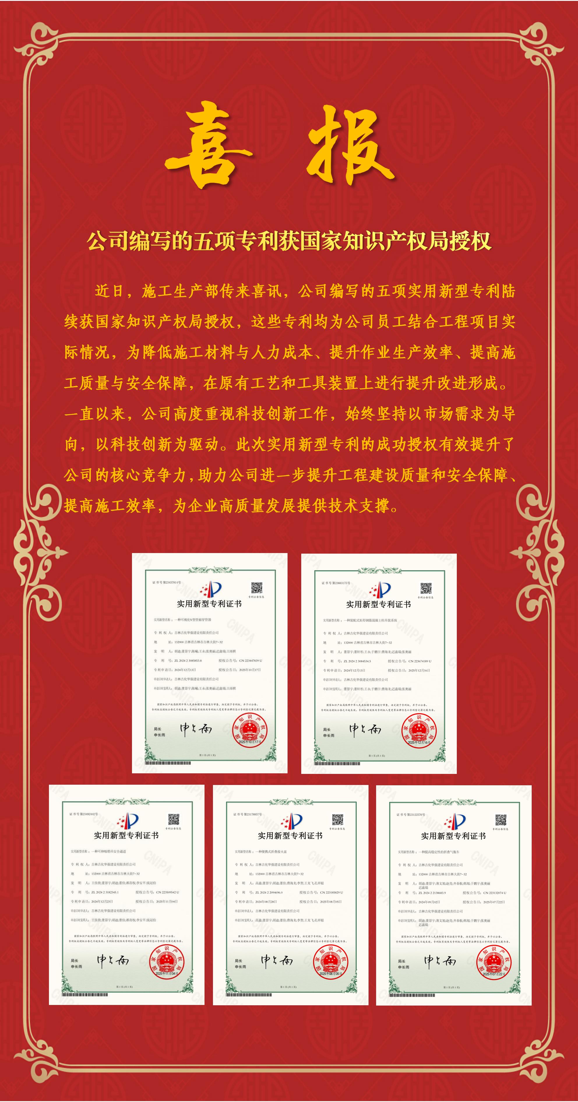 喜报|公司编写的五项专利获国家知识产权局授权