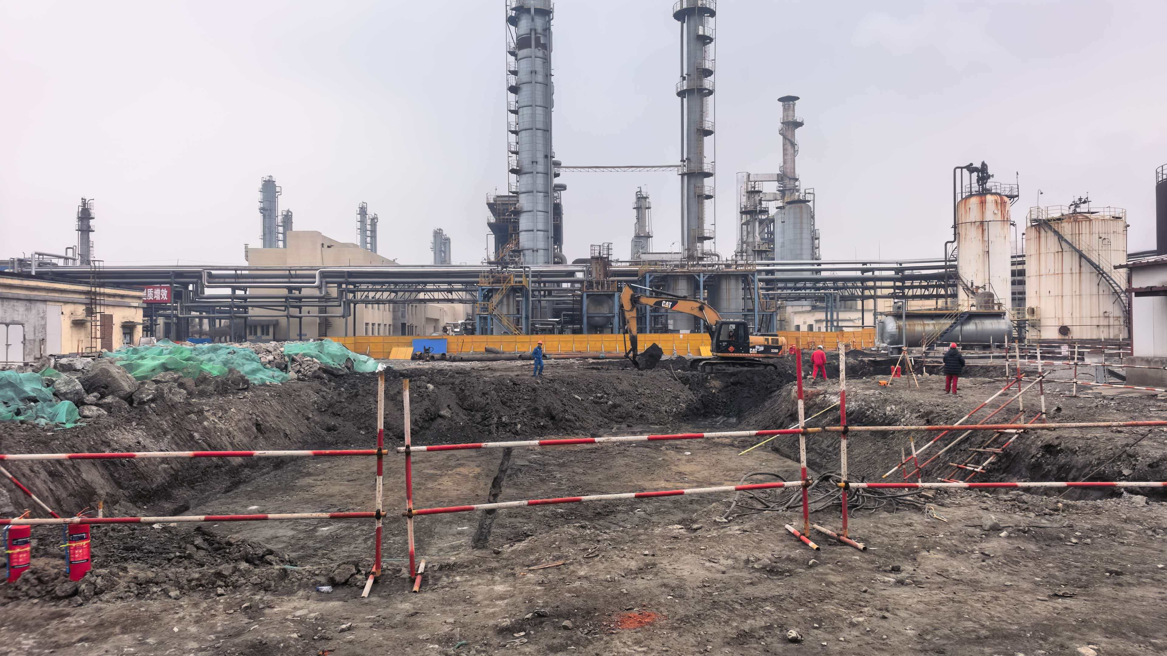 目前项目三个装置同步施工,整体进展平稳可控。截至当前,外管廊已于 4 月 9 日顺利完成首次承台浇筑,为管廊主体结构施工打开局面;变电所土方开挖完成 80%,为后续工序推进创造了有利条件;5吨/酸性水汽提单元厂区清障80%为后续整体施工奠定基础。