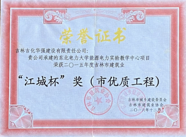 东北电力大学能源电力试验教学中心项目2015年度“江城杯”奖