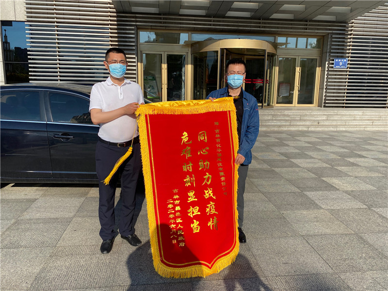 2020年6月16日下午,总经济师刘鹏代表公司接受了昌邑区副区长王继鑫代表昌邑区政府送来的一面写有“同心助力战疫情、危难时刻显担当”的锦旗。王区长代表昌邑区政府感谢华强公司在疫情期间为昌邑区所做出的贡献及帮助。