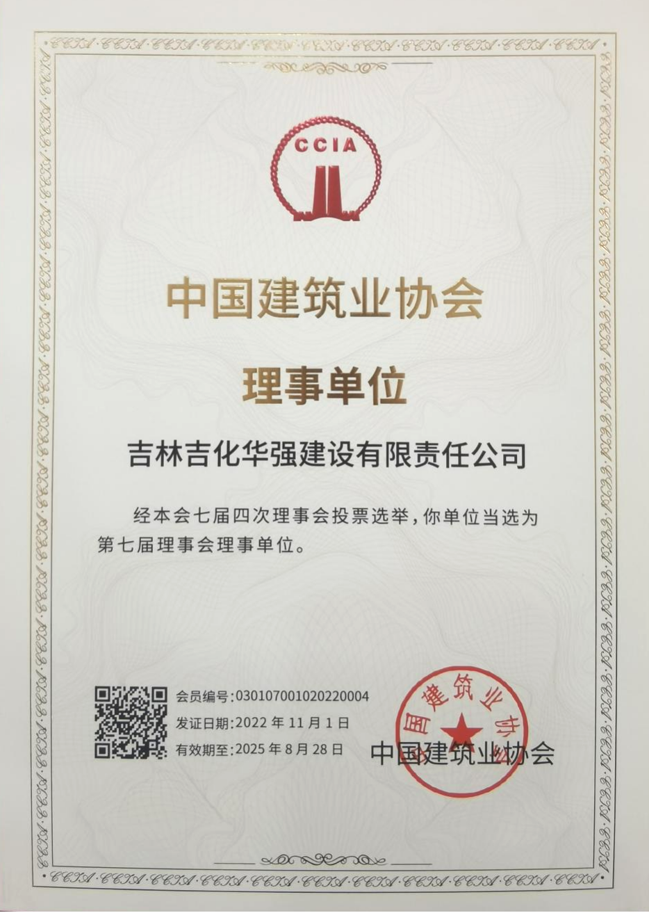 近日,经过七届四次理事会投票选举,公司当选为中国建筑业协会第七届理事会理事单位。