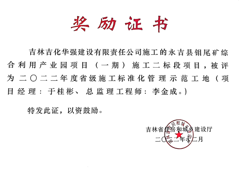 永吉县钼尾矿综合利用产业园项目(一期)——2022年省级