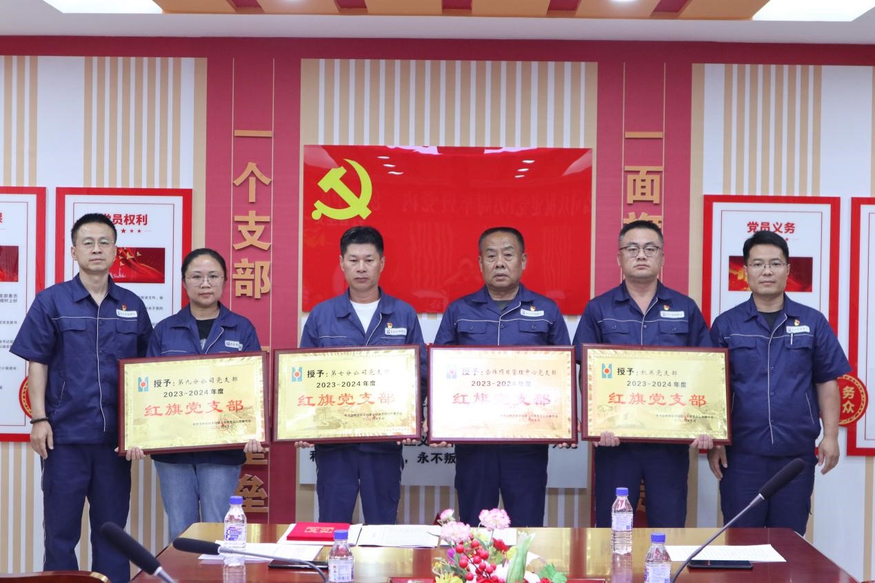 在庄严的《国际歌》中,吉化华强建设公司党委组织召开的庆祝建党103周年暨2023-2024年度党内“创先争优”竞赛表彰大会胜利闭幕。