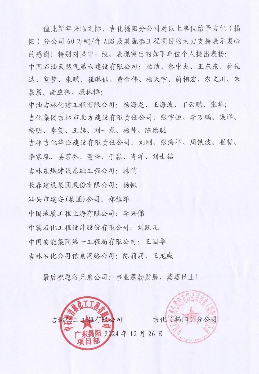 这一过程中,不仅赢得了总承包单位的深切信任,也获得了监理单位的积极肯定,更在中国石油吉化(揭阳)分公司的业主档案科及各级领导中赢得了广泛而一致的好评,先后收到了中国石油(揭阳)分公司及中石油吉林化工工程有限公司的表扬信。这不仅是对华强人专业能力和工作态度的认可,更是激励华强人继续追求卓越、精益求精的动力源泉。未来,第一分公司将继续保持这种高效、负责的工作态度,为公司及其他合作伙伴贡献更多优质工程,携手共创更加辉煌的业绩。