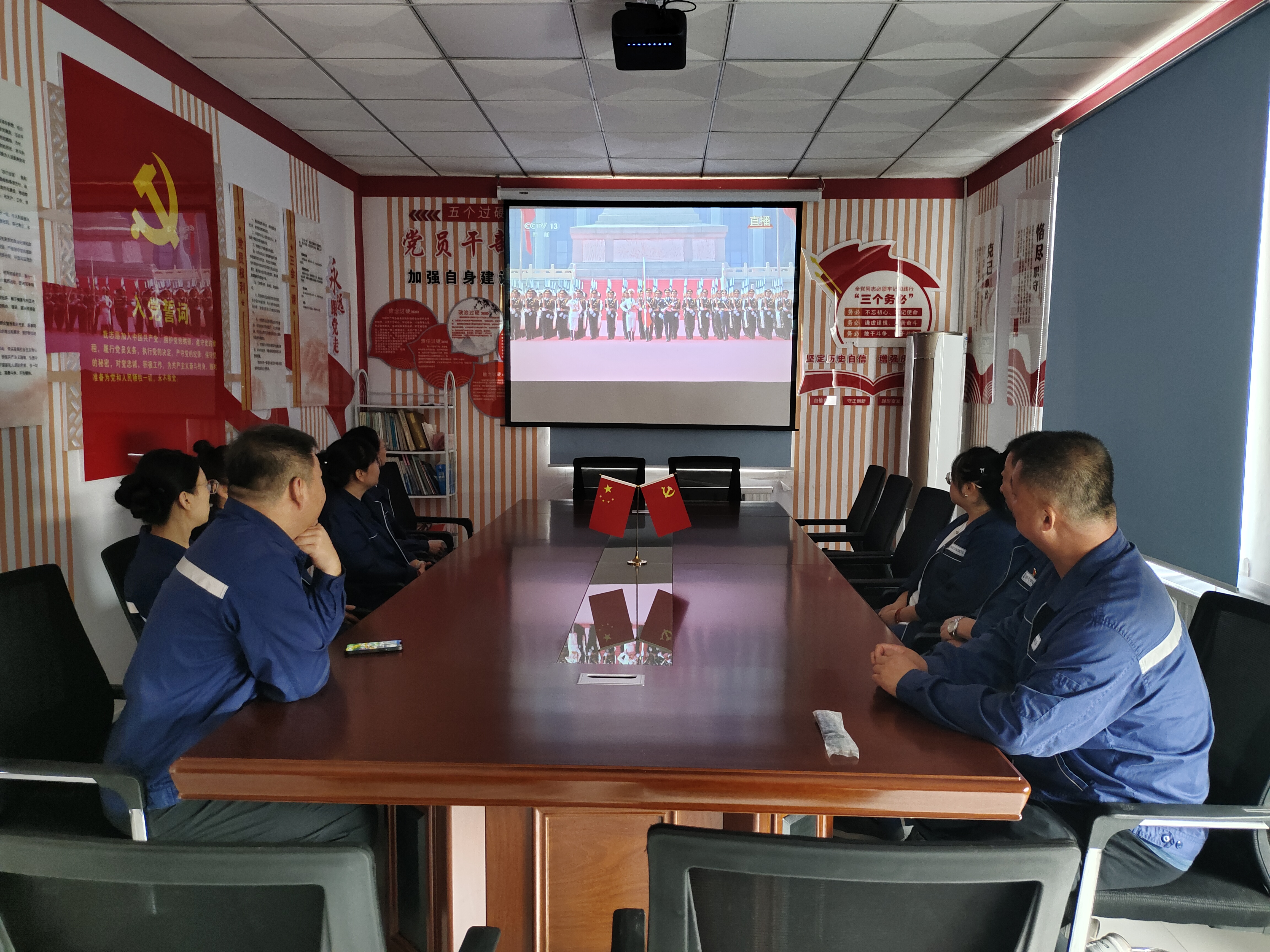 公司党委委员刘鹏、顾问孙庆吉等公司高管和老党员及积极分子在七楼会议室出席并全程观看。