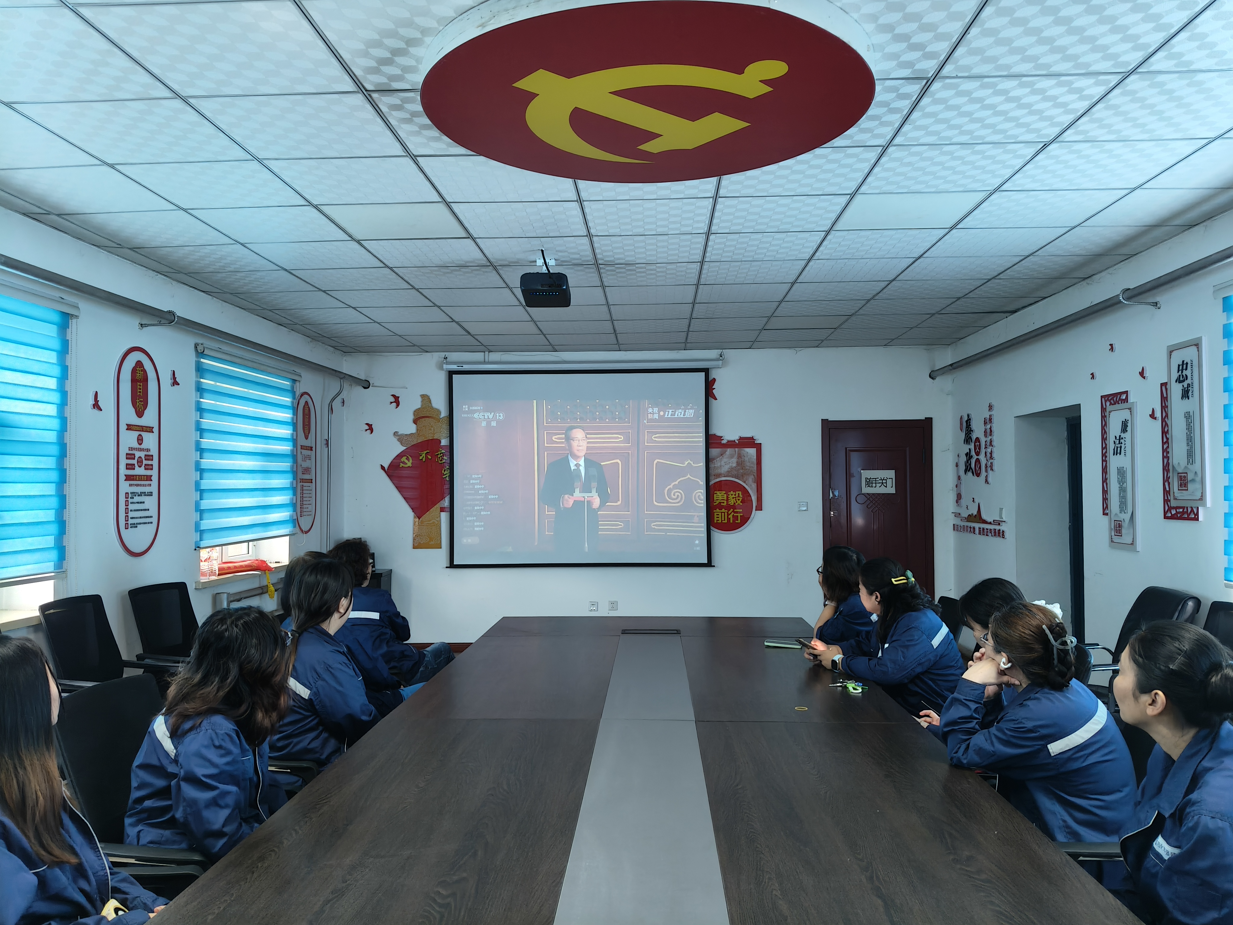 公司党委委员刘鹏、顾问孙庆吉等公司高管和老党员及积极分子在七楼会议室出席并全程观看。