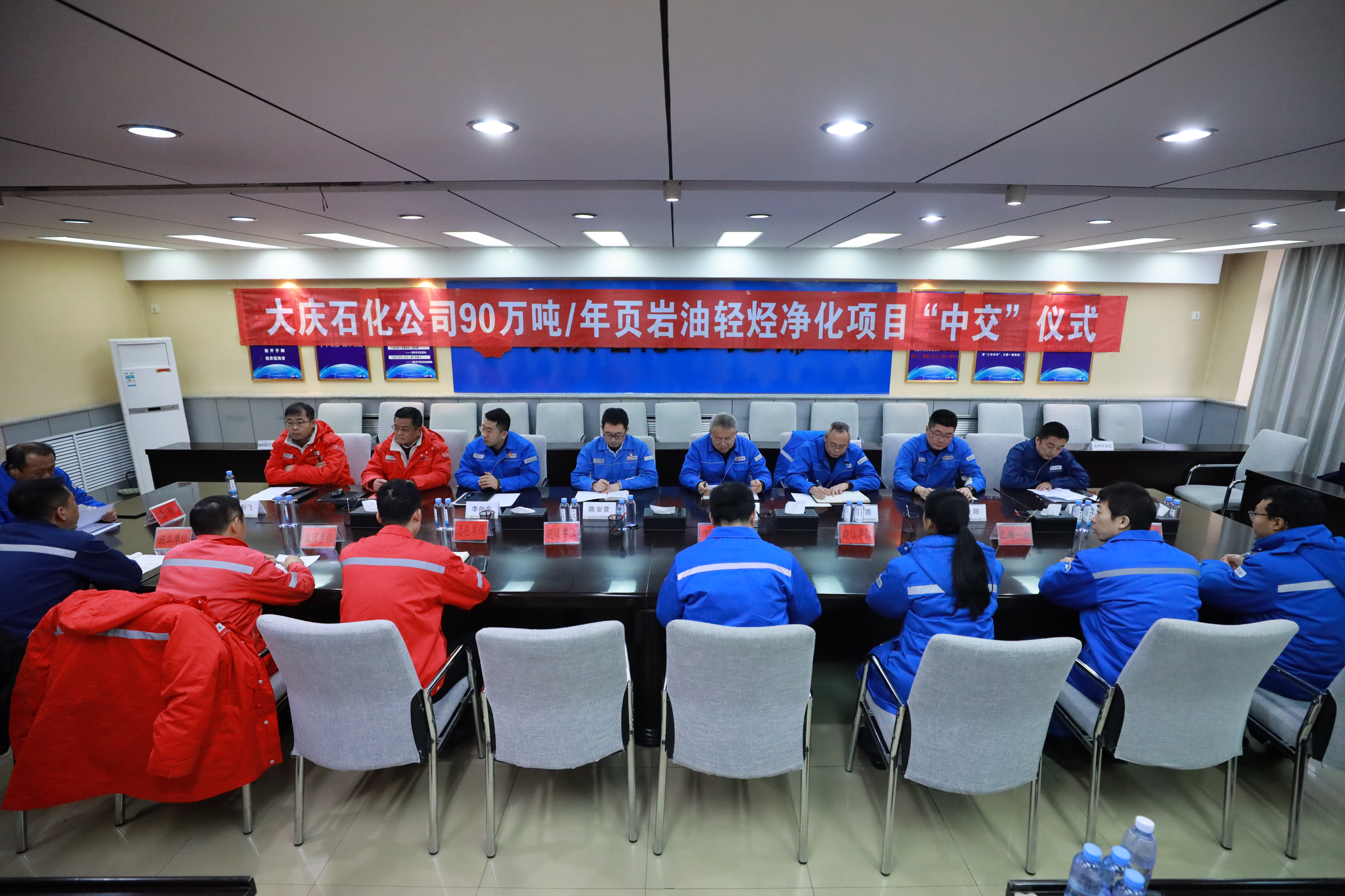 11 月 29 日,由第一分公司、第二分公司共同承建的中国石油大庆石化分公司重点建设项目——页岩油轻烃净化装置项目正式举行中交仪式,这标志着公司作为施工总承包单位,凭借高效组织、科学施工,圆满兑现了建设承诺,项目土建与安装工程全面完工,顺利进入投产筹备阶段。公司副总经理王金龙出席了中交仪式。