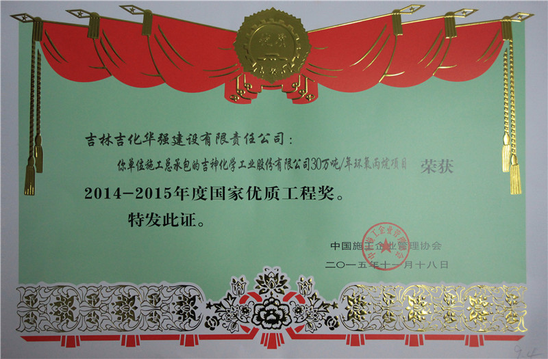 吉神化学工业股份有限公司年产30万吨环氧丙烷工程(国家优质工程奖)