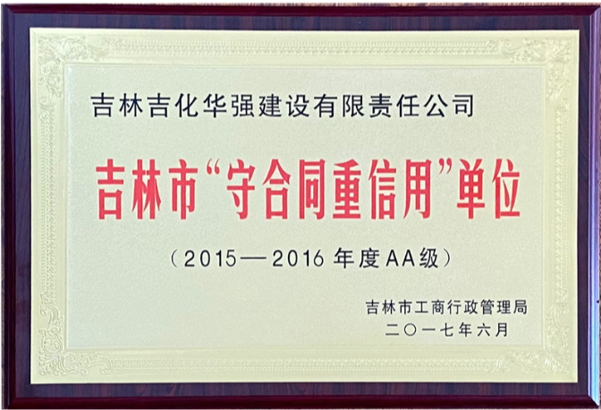 2015-2016年度AA级吉林市“守合同重信用”单位
