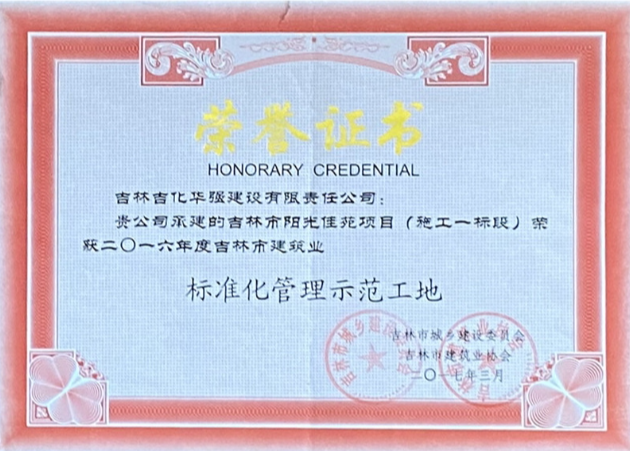 吉林市阳光佳苑项目(施工一标段)2016年度标准化管理示范工地