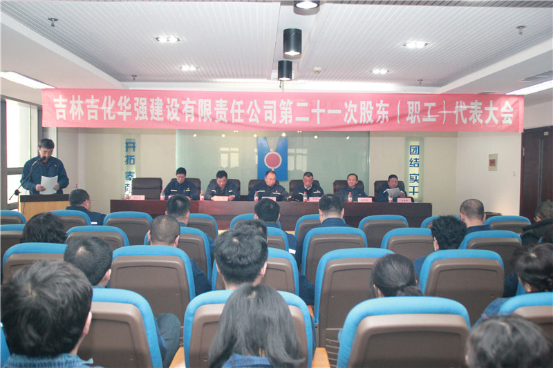 2018年1月27日上午,吉林吉化华强建设有限责任公司第二十一次股东(职工)代表大会在华强大厦20层会议室隆重召开。公司董事刘荣川、闻春阳、孙庆吉、张松波、马朝君,公司监事朱文、徐雅春在主席台上就座。 公司党委书记兼工会主席徐雅春主持会议。