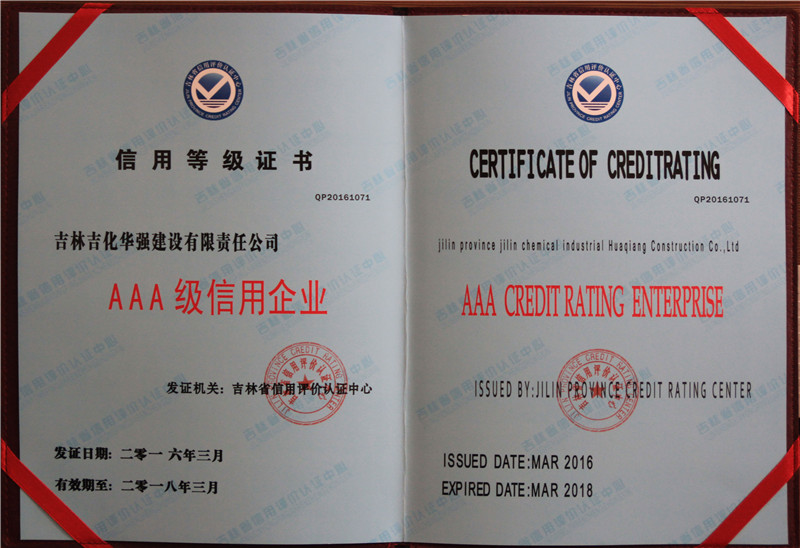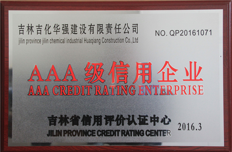 2016年度吉林省AAA级信用企业