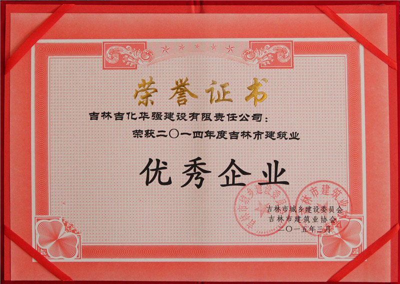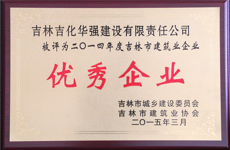 吉林吉化华强建设有限责任公司荣获2014年度吉林市建筑业企业优秀企业称号(奖牌、证书)