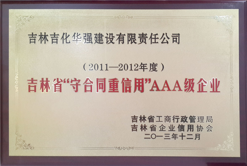 2011-2012年度-吉林省“守合同重信用”AAA级企业-吉林省工商行政管理局、吉林省企业信用协会-201312