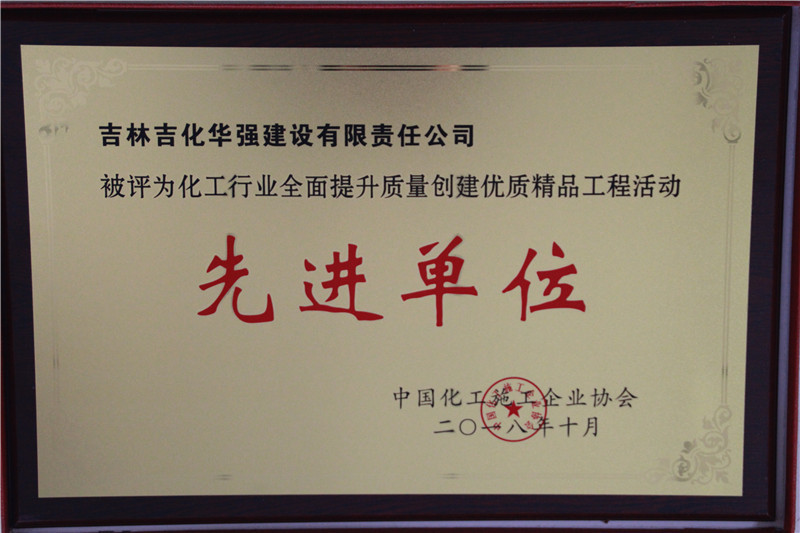 公司被评为化工行业全面提升质量创建优质精品工程活动先进单位
