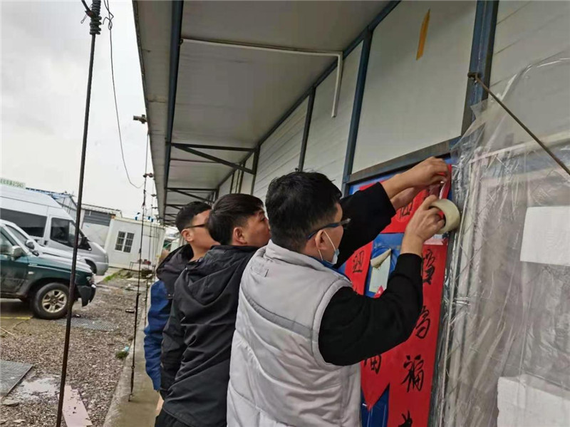当然,为了稳定员工的思乡情绪,以李俊山、常祎男为首的分公司领导班子也颇费了一番心思。大年三十,他们购买了春联并与员工们一道张贴。带着浓浓年味的春联,洋溢着满满的吉祥语,也寄托了员工对父老乡亲的无限思念。