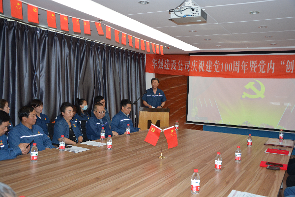 “七一”党的生日前夕,华强大厦5楼会议室内,鲜红的党旗和国旗环绕空间,投影机投射的金色党徽和旗帜为会场背景,来自公司各个岗位的党员和各类先进代表身着蓝色工装,胸前佩戴着党徽,精神饱满端坐于会议两侧。以缅怀党的丰功伟绩,弘扬党的光荣传统,传承党的优良作风,表彰党内各类先进,激发党员解放思想,努力践行改革实践,不忘初心,牢记使命,团结拼搏,扎实工作,促进公司的经济、文化持续健康发展为主题的庆祝中国共产党成立100周年暨党内创先争优竞赛表彰大会隆重召开。