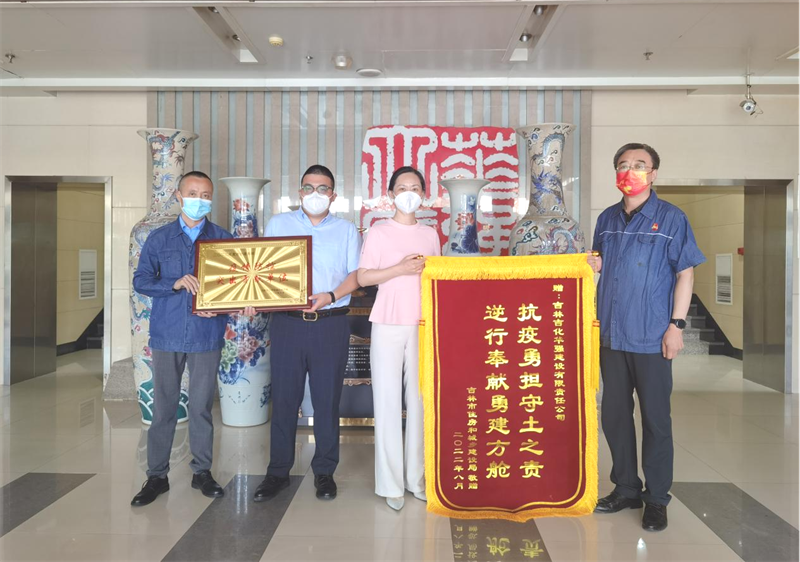 8月11日,党委书记兼副总经理徐雅春和工会副主席张志伟代表公司骄傲地接受了吉林市住建局领导颁授的锦旗和“疫情防控突出贡献单位”奖牌。这是吉林市行业管理机关对公司弘扬伟大的抗疫精神的充分肯定,也是对公司继主动参加5.12汶川救灾、7.28永吉抗洪后,再次承担社会责任奉献大爱的褒奖。