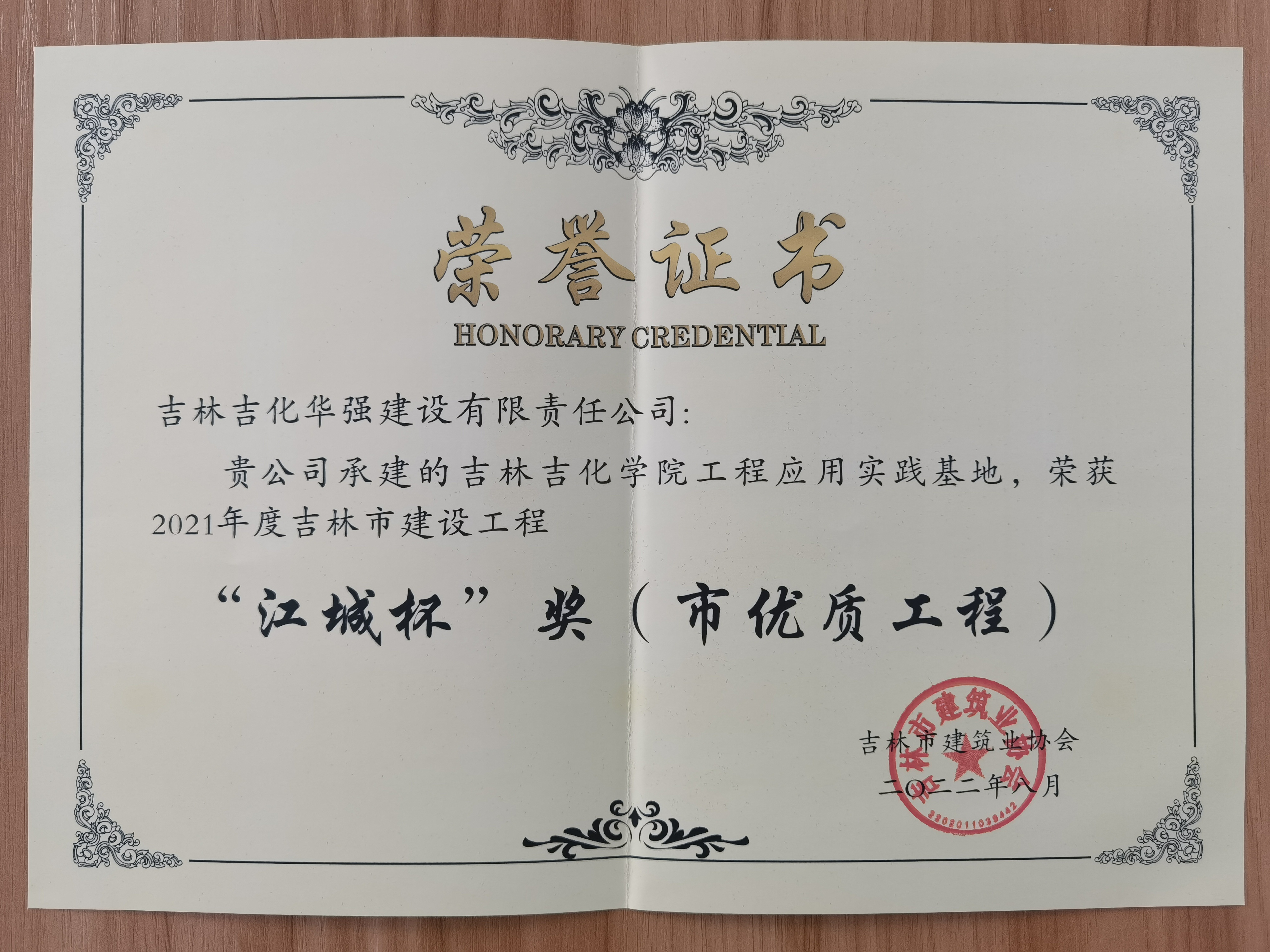 2021年”江城杯“奖(市优质工程)——吉林吉化学院工程应用实践基地