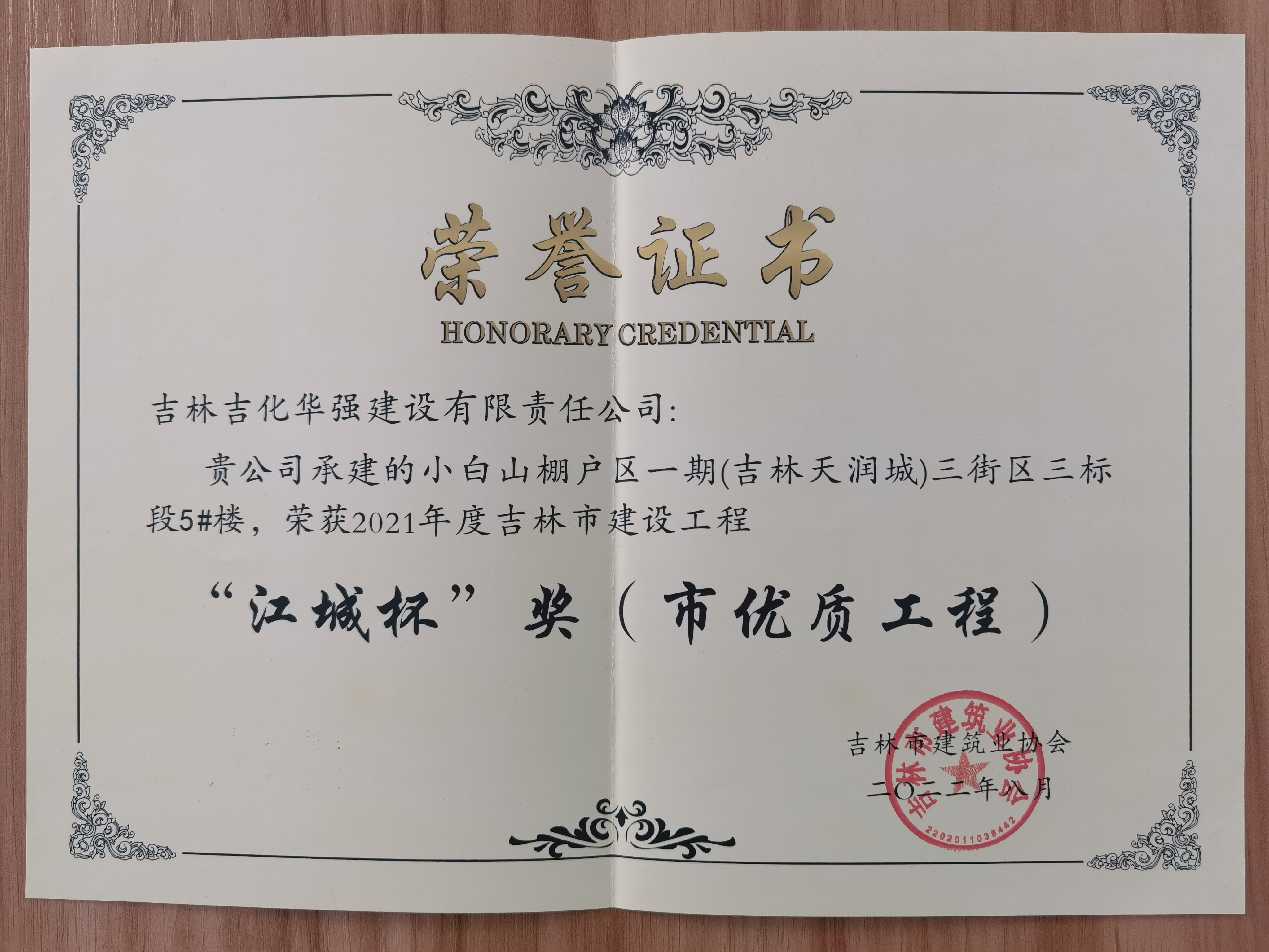 2021年”江城杯“奖(市优质工程)——小白山棚户区一期(吉林天润城)三街区项目三标段5#
