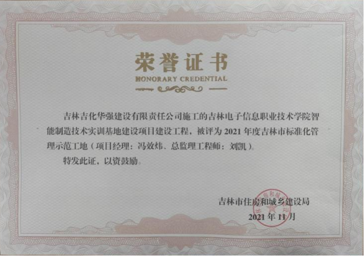 2021年吉林市标准化管理示范工地——吉林电子信息职业技术学院智能制造技术实训基地项目