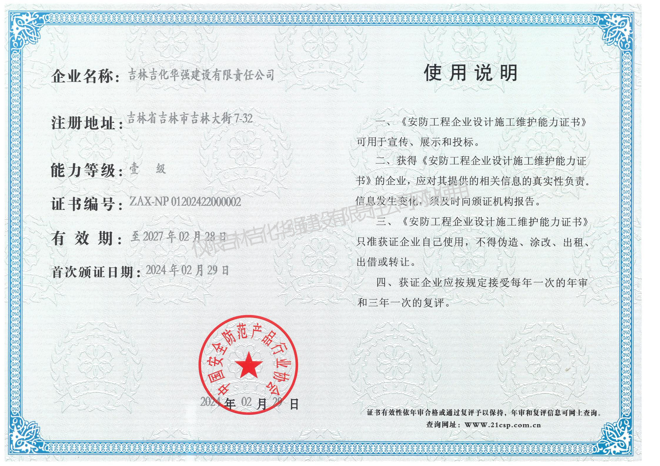 安防工程企业设计施工维护能力证书