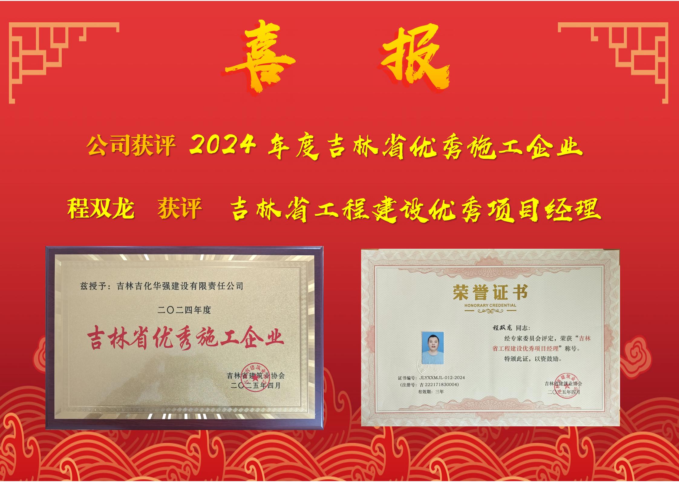 喜报|公司获评2024年度吉林省优秀施工企业及一人获评吉林省工程建设优秀项目经理