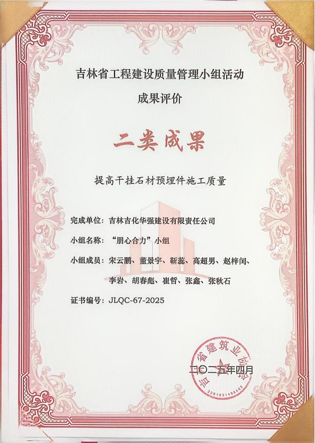 提高干挂石材预埋件施工质量二类成果